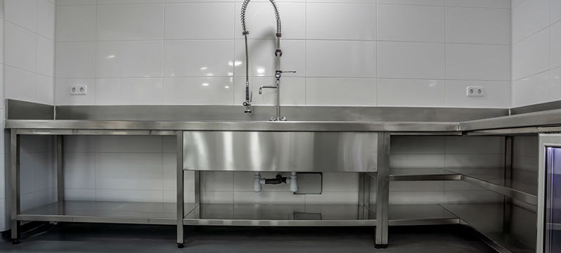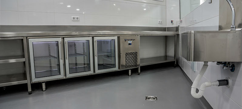 Rentaplats Campana Sammic, taules Inoxidables laterals fetes a mida amb encaixos de tubs pared.